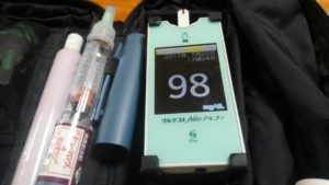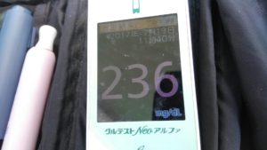 ・今日は午前中現場作業でした。昼食前血糖値は少し高かったようです。