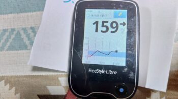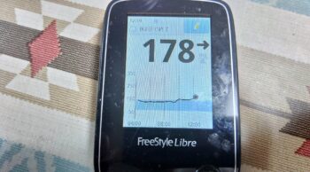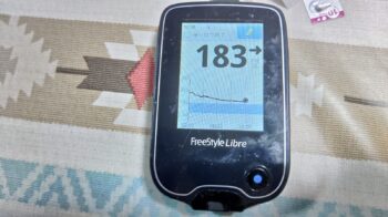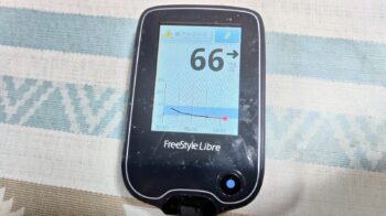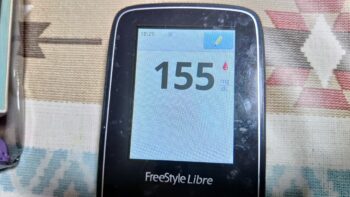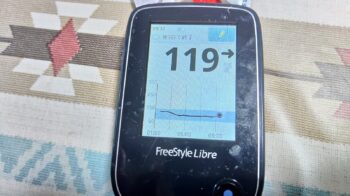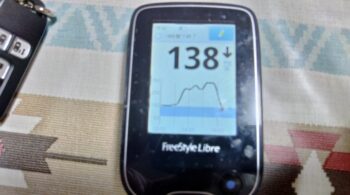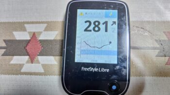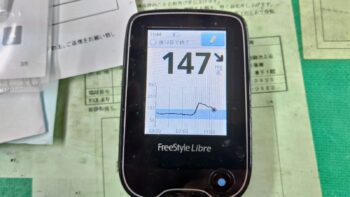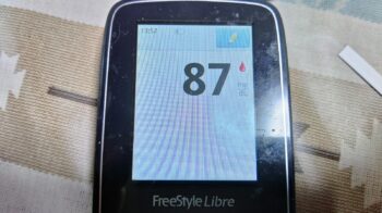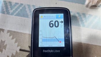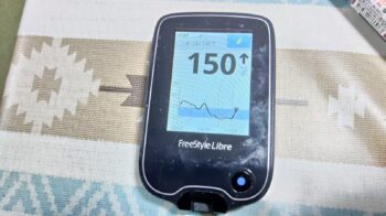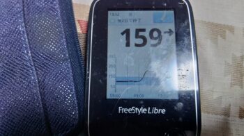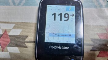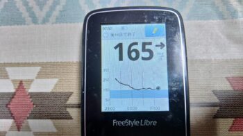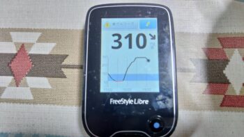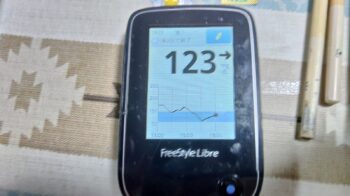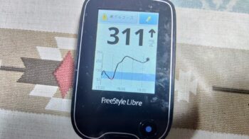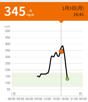 ・昼食前血糖値は高く、345mg/dlでした(朝食後すぐの血糖値測定なので、高血糖でした)。