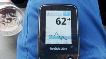 ・昼食前血糖値は低く、62mg/dlでした(昼前に低血糖で缶ジュースを1本飲んでも、まだ低血糖でした)。