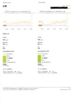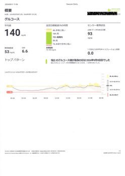 前回は、高血糖から低血糖の幅があまりなかったのですが、今回は高低差が激しく、許容範囲は75%で、平均血糖値が、140mg/dlと結果的には、前回世の若干悪くなりました。目標範囲入っていますいます。