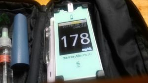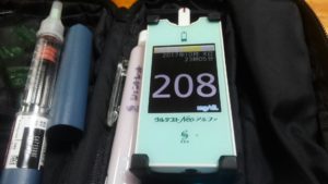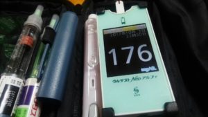 ・残念ながら夕食前血糖値が高くなってしまいました。この数値でわかるのですが、昼食時のインスリン注射量をあと1単位増やせばよかったと思います。