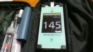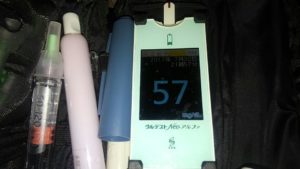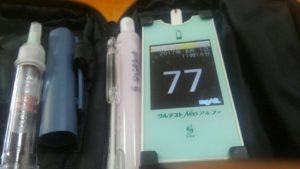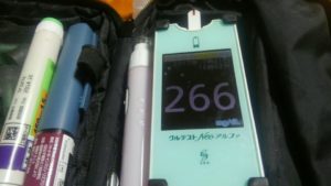 ・今朝の血糖値を計り忘れ、インスリンを現場に持って行くのを忘れました。朝は車中で食べました。