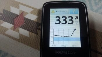 ・昼食前血糖値は高く、333mg/dlでした。(朝食後から時間が経っていないので、高血糖でした。)