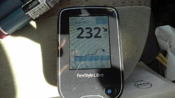 ・昼食前血糖値は高く、232mg/dlでした。(軽作業なので、血糖でが落ちませんでした。)