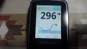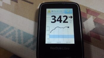 ・夕朝食前血糖値は少し高く、342mg/dlでした。(朝食時にインスリン注射をし忘れたようです。)