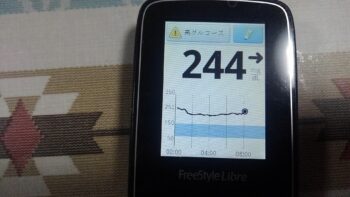 ・朝食前血糖値は高く、244mg/dlでした。(何故か昨夕食が高カロリーだったようです。)