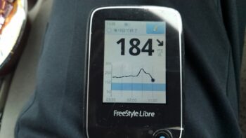 ・昼食前血糖値は少し高く、184mg/dlでした。