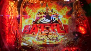 確変ループタイプです。最初の魔戒BATTLEで出玉なし通常当りしてしまいます。連チャンしだすと16Rを引けますので今回のようにミドル機並みの出玉が出ます。