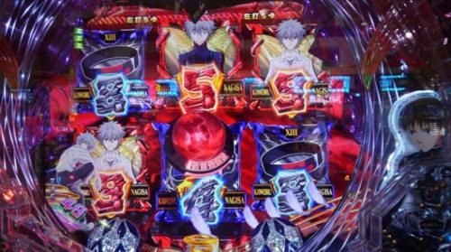 6連目は時短中にまさかの27回転で、初号機リーチ+「赤」カットイン→「5」→「XⅢ」10R確変当をたりを引き戻しました。時短の30回転以内に1/199の確率を引き戻せるでしょうか?