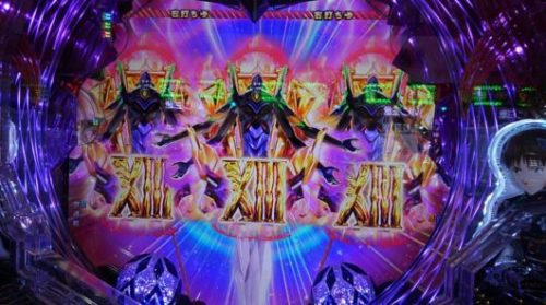 23連目は「カヲルモード」中の33回転で、画面消灯+第13号機「全回転」→「XⅢ」16R確変当たりしました。
