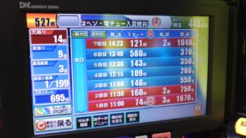 このク〇台を誰が打ち続けていたのか聞きたいくらいの履歴でした。一度「遊タイム」に入った台はまた入る典型的な例です。