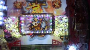 確変中に甘デジの通常時より、辛い確率ですので確変ループで良かったと思います。それでも順当に16R確率を3連して、5連目があっさり、ブルーの「四」通常当りでした。
