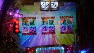 「CR ジョーズ 再臨」で数台打ちましたが、良いところなく、目に止まったのは「CR 地獄少女3 宵伽」でした。この台は、割と連チャンするのと、確変中のハマりで印象が残っています。