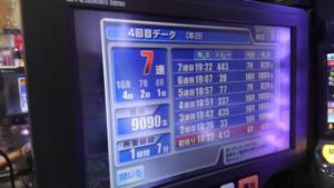 本日、初当りが345回転で通常当り。初当り2回目が124回転で2連。初当り3回目が、378回転で通常当り。408回転の台でした。