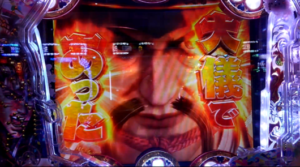 残っていた0.5Kで打ち切って、座って2回転目の252回転、変動開始時、「ボタンバイブ]+一夢庵チャレンジで当たりました。さすがの好調台でおまけに「真・傾奇RUSH」に突入しました。