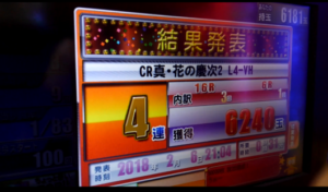 なんと差玉が46000発の台でした。「CR 真・花の慶次2」は好調台しか出ないと言い切れます。