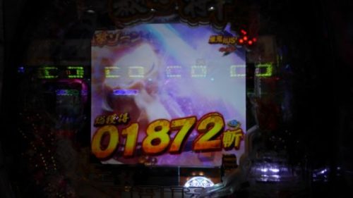 「殲鬼RUSH」中443回転ハマり、2R分2回の出玉を合わせて、出玉が1872玉で、差玉ですと930玉でした。この台ダメですね。