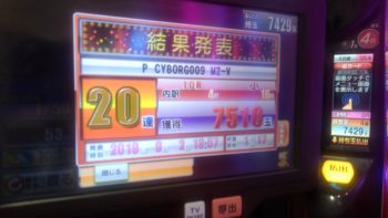いろいろ台を吟味していましたら「P CYBORG(サイボーグ) 009 CALL OF JUSTICE M2-V(コールオブジャスティス)ライトミドルVer.」で好調台らしきものを見つけました。