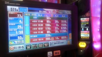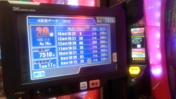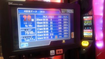 本日、初当たり1回目が69回転で29連、2回目が176回転で22連、3回目が158回転で6連、64回転で空いていた台でした。