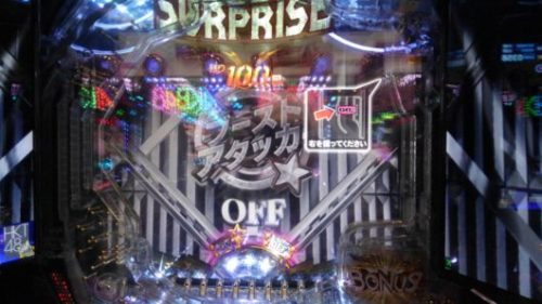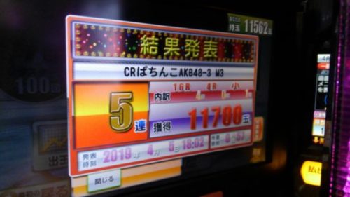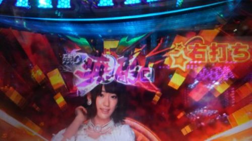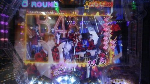 4連目は26回転、円陣+AKB48リーチ→外れ→「よっしゃいくぞー!!」「無敵」ブーストアタッカーBIGBONUS確変当たりしました。