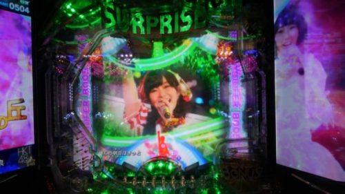 初当り2回目は、時短後すぐの133回転で、AIR VIBE+チケット3枚「青」→「ゼブラ柄」保留+「赤」タイマー予告+「重力シンパシー」+「LIVE ZONE」→「熱狂LIVE ZONE」+超絶SPリーチ「ヘビーローテーション」+超絶48フラッシュ+「推しメン超絶カットイン」→「12」4R確変当たりしました。