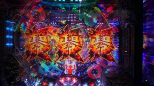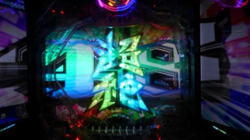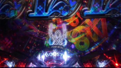 3連目は34回転、Pフラッシュ「先光り」+ウーファーブーストモード「ゼブラ柄」+CHANCE「赤」文字+超絶48フラッシュ→「7」16R確変ブーストアタッカーBIGBONUS確変当たり。