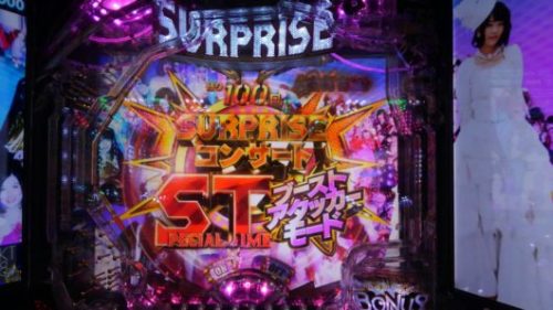 5連目は、なんと356回転もハマってくれました。16R確変1回分の小当たり出玉がありました。その後にでシャッターが閉まり、ブーストアタッカーモード終了→2R通常当たりでした。その後の「SURPRISEコンサートST」100回転もスルーしました。