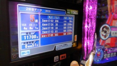 初当り、1回目が、95回転で2連して474回転の台でした。