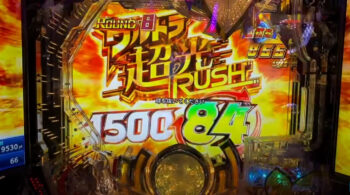 右打ち中の大当たりは、すべて出玉1500個の10Rとなる上に、「ウルトラ超光RUSH」継続率は約84%と高いので、一撃大量獲得にも十分期待できる仕様となります。