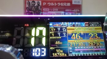 一撃出玉2万発は久しぶりのことです。それでも「ぱちんこウルトラ6兄弟」が連チャンするのは、1回の大当たりで出玉が1500発が最高だからです。