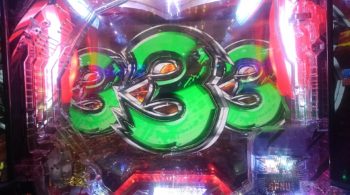 「お座り二発」投資300玉の348回転で、ぴょこんと「紫」保留が入りました。入賞時フラッシュがなかったのですが、「緑」保留以上がいきなり入るのは、良い兆候と思っています。
