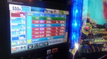 うまく空いた台は初当りが軽そうな良さそうな台でした。初当たり1回目が、305回転で2連、2回目が、232回転で7連、3回目が、124回転で2連、4回目が、135回転で単発スルーで、323回転の台でした。