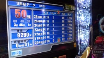 前回の37連と、今回の44連と23連+20連と今回の50連で、右打ちっぱなし打法の効果があると信じてもらえる人はいるとは思いません。ただ信じているから連チャンすると思っています。