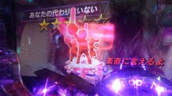 続行の18回転、入賞時フラッシュ+「緑」→「赤」保留+超絶48フラッシュ+超絶SPリーチ「君が思っているより」+「赤」カットイン+「赤」ボタン→「1」4R通常当たり。