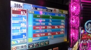 空いていたのは、前々日103回、前日158回の台で、初当たり1回目が、86回転で4連、初当たり2回目が、117回転で通常当たりで64回転で空いていました。