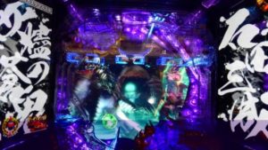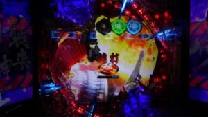 3連目は50回転で白い紳士に負けて、ガッカリしていましたら、その「再起の刻」に入った7回転で「緑」保留+VS石田三成→負け。出玉なし4R通常当りしました。