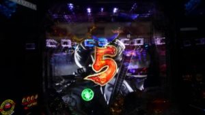 「超蒼剣RUSH」に入って50回転、「蒼」保留+覚醒MAX+Pフラッシ→「3」→「7」当り。