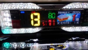 総投資が3Kで差玉が2650玉になる80回転まで回してやめました。回収が2650玉で9.4Kのプラス6.4Kでした。