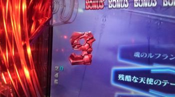5連目は時短中の47回転で、カヲルモード+「1」×「9」弐号機リーチ+「赤」カットイン→「9」5R当たり。