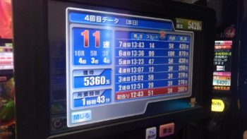 初当り1回目が、203回転で4連。2回目が、136回転で6連。3回目が130回転で単発スルー。35回転で空いていたST後「即ヤメ台」でした。