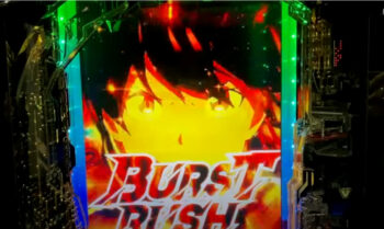 右打ち時の大た当り5回達成で突入します。内部状態はソードRUSHと同じST155回転+4回転ですが、変動スピードが速くなるため出玉スピードが速くなります。演出については「バトルオブザカオスドレイク」の演出に加えて、バーストRUSH専用の演出が発生します。