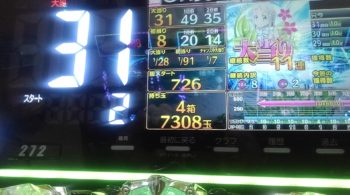 11連目は、2回転で、「V開放」+打ち上げ花火リーチで「4」10R Wぼーなす当たりしました。