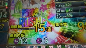 15連目は、2回転で、打ち上げ花火リーチで「4」10R当たりしました。