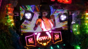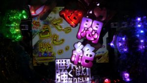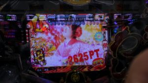 いつもの「CR GANTZ」で当たらず、「CR世界で一番強くなりたい」が2台あるうち8連後、112回転で空いていました。2K、30回転ほど回してやめ。もう1台が10連越えしていました。