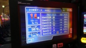 ここから当りまくりの13連、「閉店」アナウンスが流れた保留で最後にまた当たり、14連の確変中に閉店でした。15Rが2回と保留連も2回ありました。