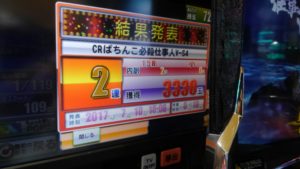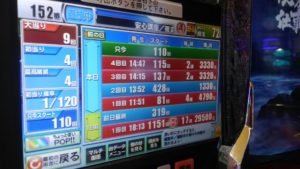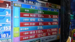 時短後すぐに当たるいい台でしたが、連チャンしないのでやめました。続ければ連チャンするかもしれませんが、土曜日に負けているのでやめました。