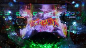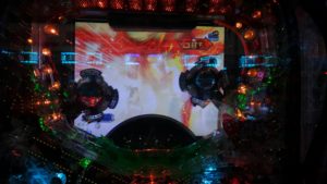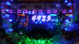 ・入賞時フラッシュです。保留入賞時に左右の役物が発光する。またはセンター役物