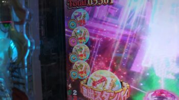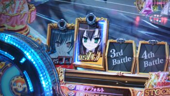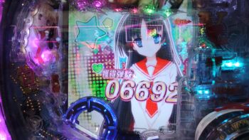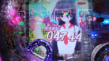 投資、253回転目で「ピロッ」と「点滅」保留から256回転、入賞時フラッシュ予告+ヒステリア誘発ゾーン+ヒロインズSTOCK+「紫」➝「赤」保留+Hysteria Modeガバメント振動予告+アリア・ザ・ガバメント+萌えカットイン予告+緋弾覚醒→「6」当たり。