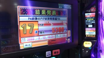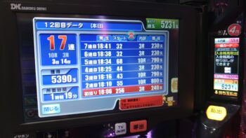 総投資が8.5Kで、出玉が、9962玉で差玉が5231玉でした。換金18.6Kでプラス10.1Kの辛勝でしたでした。