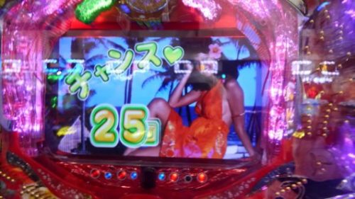 今が潮時と思い、25回転のチャンスタイム終了後に「即ヤメ」しました。4連+5連で差玉では280玉でした。